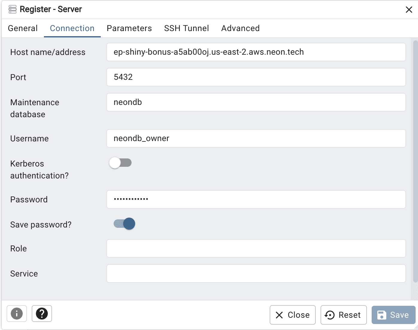 • Host: The endpoint of your hosted Postgres database (e.g., ep-...us-east-2.aws.neon.tech).
